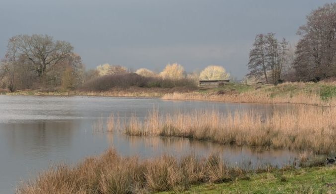 Sun catching the trees on the Flood Plain from Oak Hide – Photograph by Nick Barlow
