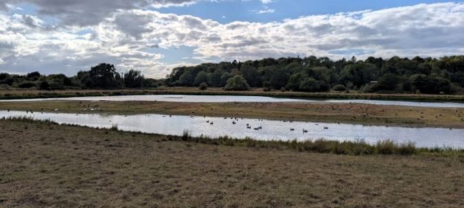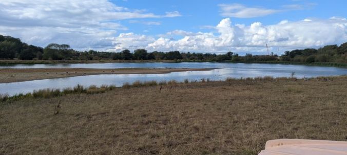 After the warmest summer on record for the UK, views from Car Park Hide showing the low water levels